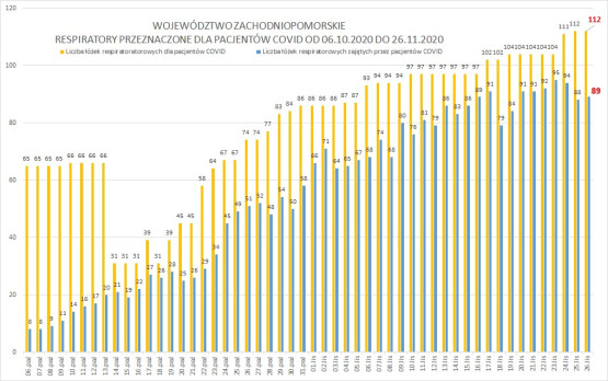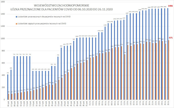 Obecnie w województwie zajętych jest 975 z 1496 łóżek przygotowanych dla pacjentów zmagających się z koronawirusem. Zajętych jest 89 ze 112 respiratorów (jeszcze nie wszystkie respiratory z ostatniej transzy przekazanej przez Agencję Rezerw Materiałowych zostały ujęte w statystykach).