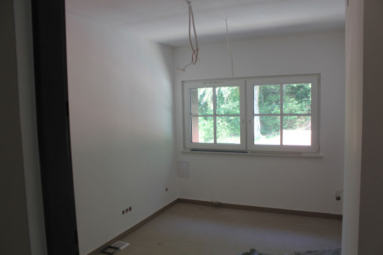 Jak informuje Paulina Łątka z Urzędu Miasta, zaawansowane prace prowadzone są również wewnątrz budynku przyszłego centrum edukacji i schroniska. Trwa montaż instalacji wodnych, kanalizacyjnych, elektrycznych i teletechnicznych oraz centralnego ogrzewania. Równolegle prowadzone są prace wykończeniowe. W toaletach na piętrze położono już płytki ceramiczne, a pokoje hotelowe pomalowano farbą. W najbliższych miesiącach odbywać się będzie montaż armatury łazienkowej, oświetlenia oraz układanie wykładziny podłogowej.