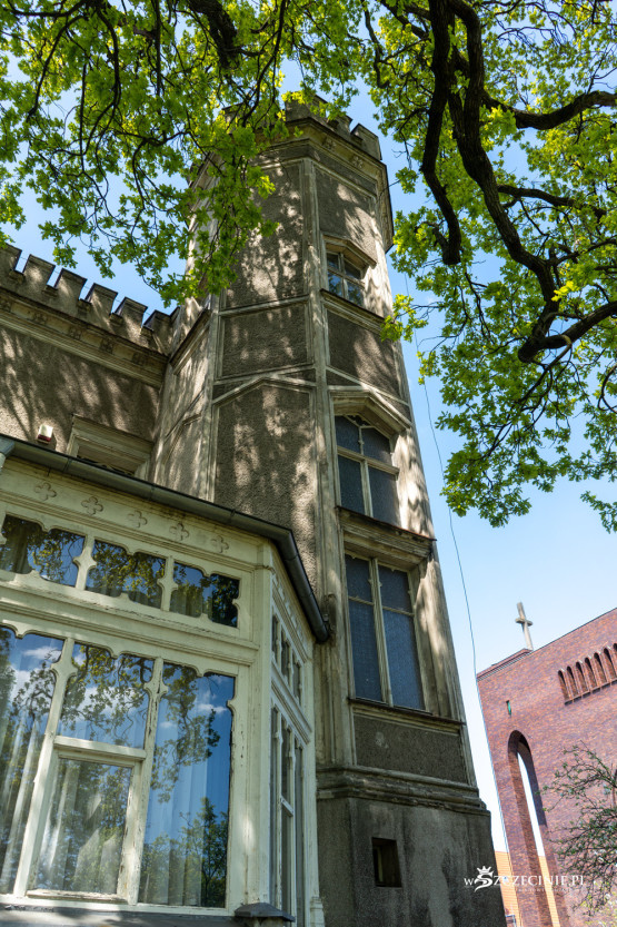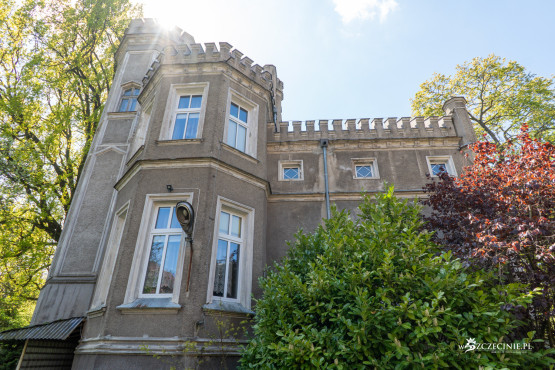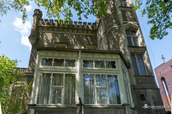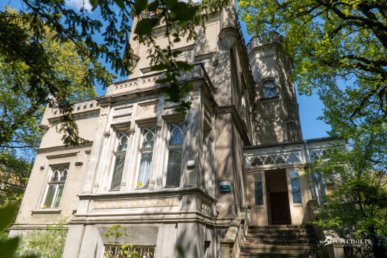 Budynek powstał w latach 1875-76 w stylu angielskich posiadłości wiejskich, z charakterystycznymi wieżyczkami i blankami, upodabniającymi go do dawnych gotyckich zamków. Skorzystaliśmy z nadarzającej się okazji (wizja lokalna przed przetargiem), by zobaczyć jak willa prezentuje się w środku.