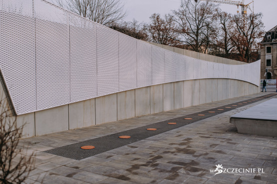 Zagospodarowano także teren wokół nowej fontanny. Pojawiły się tam ławy-siedziska, logotyp muzeum, stojaki rowerowe i kosze na śmieci. W ramach tego zadania wykonano również mur oporowy w rejonie skarpy ogrodów działkowych.
