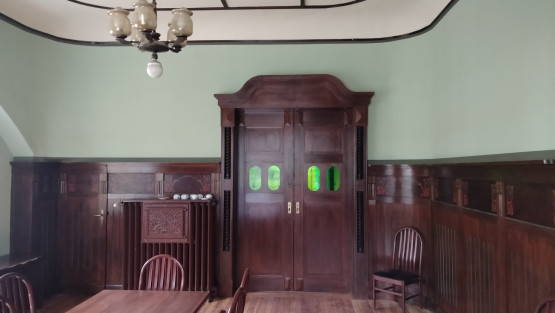 Wśród wyremontowanych pomieszczeń warto zwrócić uwagę na dawną jadalnię na parterze. Odnowione zostały tam boazeria, drzwi i listwy sufitowe, ściany oraz grzejniki. Oryginalny wygląd odzyskały drewniana podłoga i elementy metalowego ornamentu.