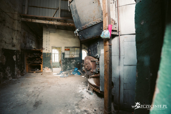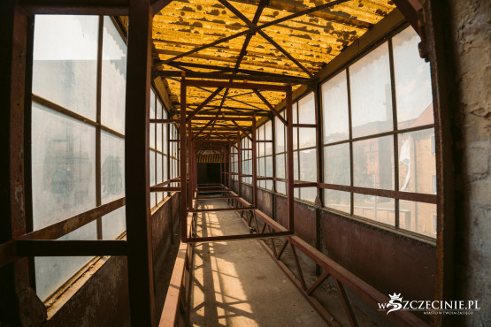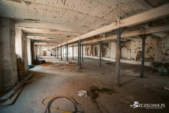 Owszem, niektóre ściany musiały zostać wzmocnione metalowymi szynami, na ostatnim piętrze jednego z budynków wiszą kartki, by nie obciążać miejscowo podłogi ciężarem większym niż 200 kilogramów, a w innym w ścianę „wplotły się” korzenie drzewa, które wyrosło na dachu. Ale żaden z elementów konstrukcyjnych nie wygląda jakby miał się zaraz zawalić, nie czuć zapachu stęchlizny, znajdujące się poniżej tafli Odry piwnice są suche.