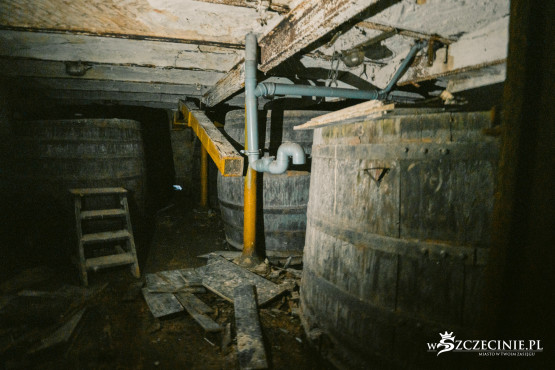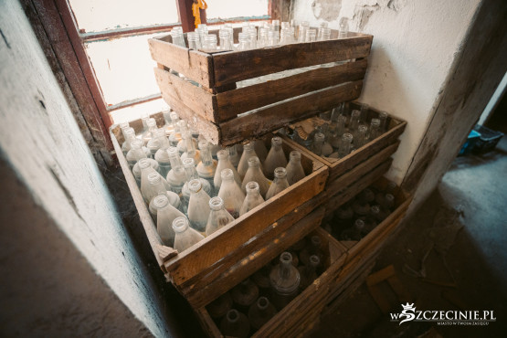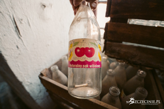 W piwnicy wciąż można znaleźć stare beczki i oryginalne komory osadnika służące niegdyś do oddzielania zawiesin. Na jednym z pięter natknęliśmy się na puste butelki z kolorowymi etykietami, które przygotowano do rozlania soków.