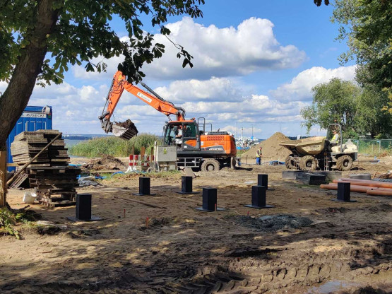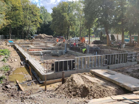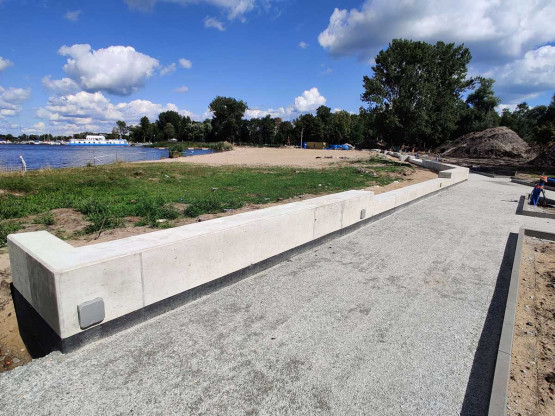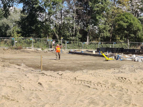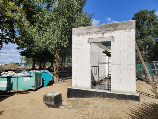 – Przy wejściu na teren kąpieliska powstaje nowy budynek kas. Tuż dalej budynek administracyjno-socjalny, który znajdzie się w miejscu wyburzonego baraku pochodzącego jeszcze z lat 60. ubiegłego wieku. Są już fundamenty i niebawem zacznie piąć się w górę. Wzdłuż całej plaży powstaje mur ozdobny, a przy nim chodniki. Na terenie kąpieliska, po przebudowie, znajdą się także trzy wiaty. Zrobione są już szalunki – informuje Andrzej Kus, rzecznik prasowy miasta ds. komunalnych i ochrony środowiska.