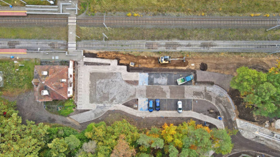 Miasto przygotowuje infrastrukturę, która w przyszłości ułatwi przesiadkę na pociągi Szczecińskiej Kolei Metropolitalnej. Przy ul. Produkcyjnej w Załomiu powstają nowy parking, chodniki oraz zatoka autobusowa.
