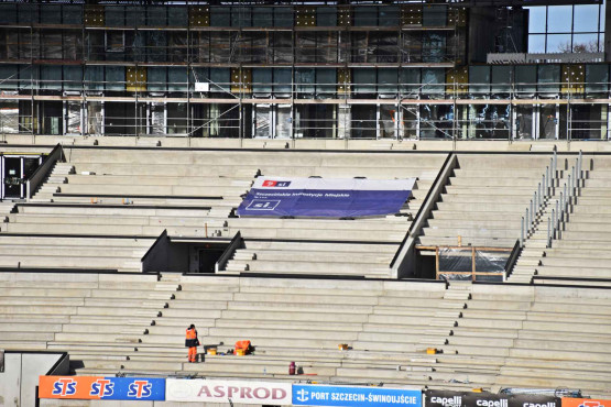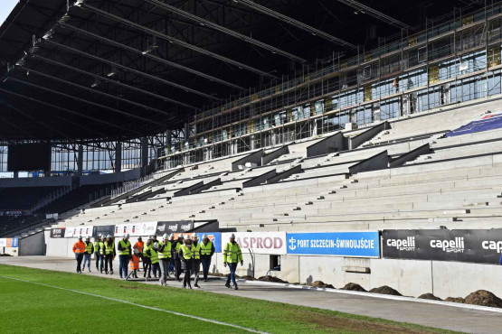 – Spektakularne etapy budowy pomału za nami. Trybuny, jak i stalowa konstrukcja dachu, są już w swoim docelowym kształcie. Tylko na fragmencie narożnika północno-wschodniego brakuje jeszcze pokrycia dachu. Wciąż montowana jest siatka na elewacji obiektu. Wokół głównej płyty boiska wykonano ostatni fragment betonowej opaski – informuje Piotr Zieliński, rzecznik prasowy spółki Szczecińskie Inwestycje Miejskie.