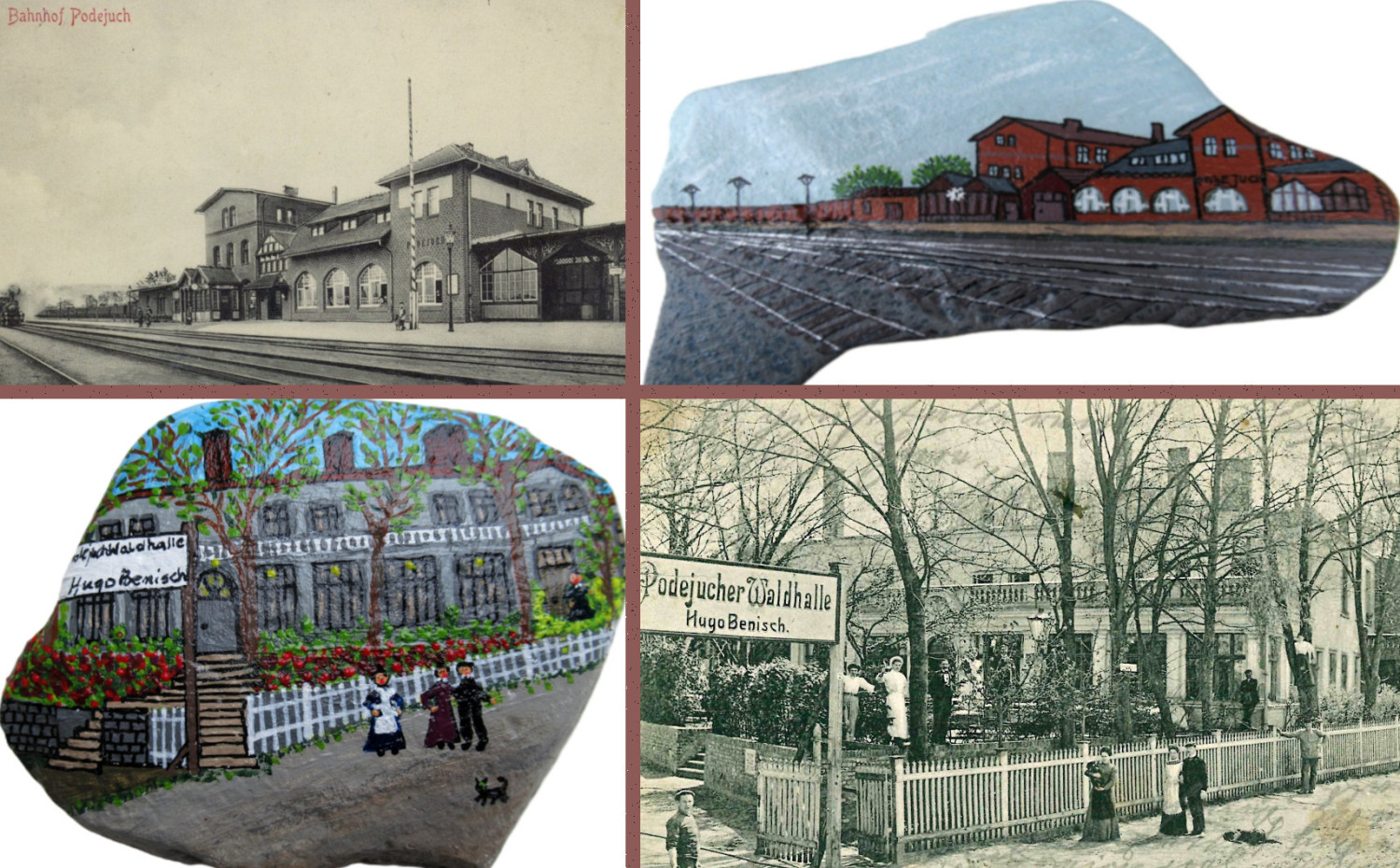 Autorką obrazów na kamyczkach jest Wioleta Startek, ich zdjęcia przygotował Ryszard Podporski, a historię zilustrowanych miejsc i postaci opisał Jakub Olszewski. Tak powstał album „Historia Podjuch w kamykach zapisana”.