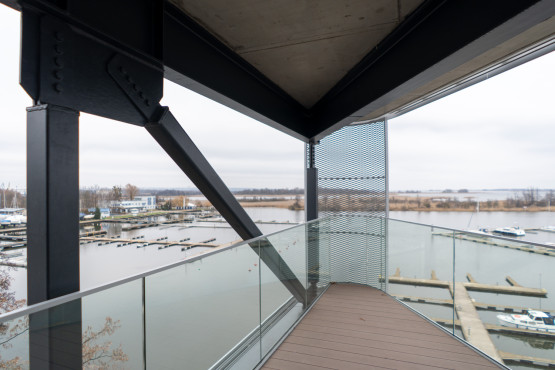 Sąsiedztwo przystani jachtowej sprawia, że każdego dnia czeka na nas inny widok. Raz to krajobraz wypełniony przypływającymi jachtami, innym razem widać najmłodszych żeglarzy trenujących na Optimistach, a czasami ten widok to prostu cisza i spokój z Jeziorem Dąbie w roli głównej. Im wyżej, tym widok coraz ciekawszy.
