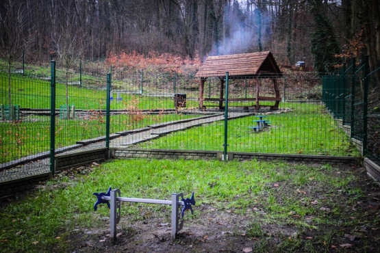 Wewnątrz wybiegu powstał drugi, niewielki wybieg dla mniejszych psów i szczeniaków. On również jest wygrodzony. Póki co znajduje się tam jedno urządzenie do zabawy, ale w przyszłości mają pojawiać się kolejne.