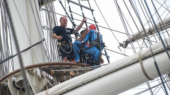 Wspinaczka wzbudziła wiele emocji ze względu na wysokość, ale i towarzysza prezydenta. Wraz z Piotrem Krzystkiem na maszt wdrapywał się Spiderman ze szczecińskiej Ligi Superbohaterów. Co ciekawe, człowiek pająk podjął wyzwanie mimo lęku wysokości.
