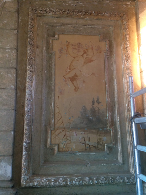 - Malowidła odsłoniliśmy spod kilku warstw farby. Powtarza się na nich motyw stylizowanego pejzażu z unoszącym się w powietrzu amorkiem – mówi Marta Kaźmierczak, konserwator zabytków z firmy Konsart, która uczestniczyła w pracach renowacyjnych.
