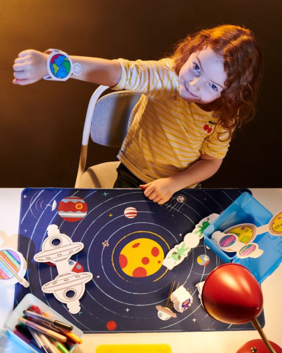 Kolekcja do prawdziwy raj dla małych astronautów i odkrywców. Tekturowa rakieta AFTONSPARV to idealny towarzysz wielkich przygód. Jej zewnętrzną część można pomalować według własnego pomysłu i stworzyć unikalny statek kosmiczny, który przeniesie nasze pociechy w fascynującą podróż po wszechświecie. Na szczęście rakieta napędzana jest wyobraźnią, co sprawia, że możliwości zabawy są nieograniczone.