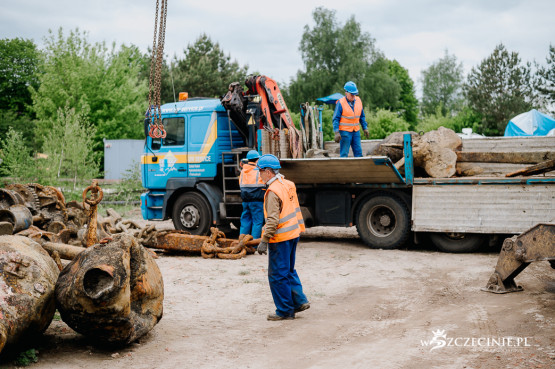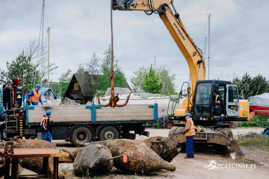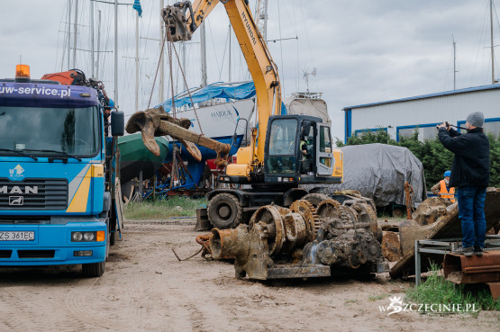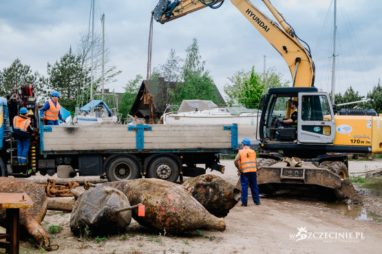 Wydobyte elementy najpierw wyładowywane są na terenie bazy firmy UW Service w Dąbiu, gdzie przygotowywane są do dalszego transportu. Tam odbywa się też ich inwentaryzacja i pierwsza ocena. Znaleźć można wśród nich zarówno elementy wyposażenia cywilnych jednostek pływających, jak i interesujące świadectwa II wojny światowej.