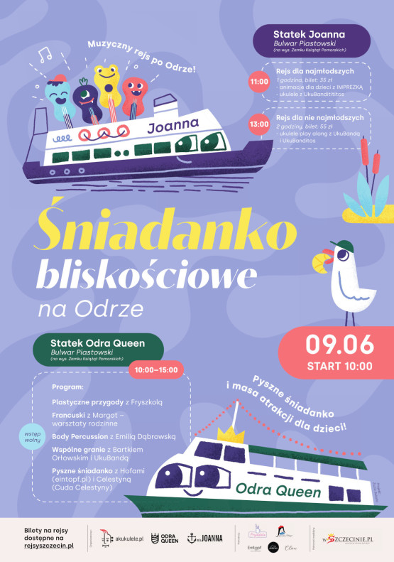 Na Śniadanko bliskościowe na Odrze organizatorzy zapraszają w niedzielę, 9 czerwca, od godz. 10:00. Bilety na rejsy dostępne są na www.rejsyszczecin.pl.