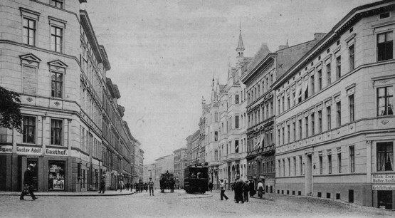 Hala sklepowa zajęła część wyrwy, która powstała w czasie wojny, w dodatku została nieco odsunięta od ulicy. Parkowa wygląda więc zupełnie inaczej niż na historycznych zdjęciach, gdy w tym miejscu widać zwartą pierzeję kamienic.