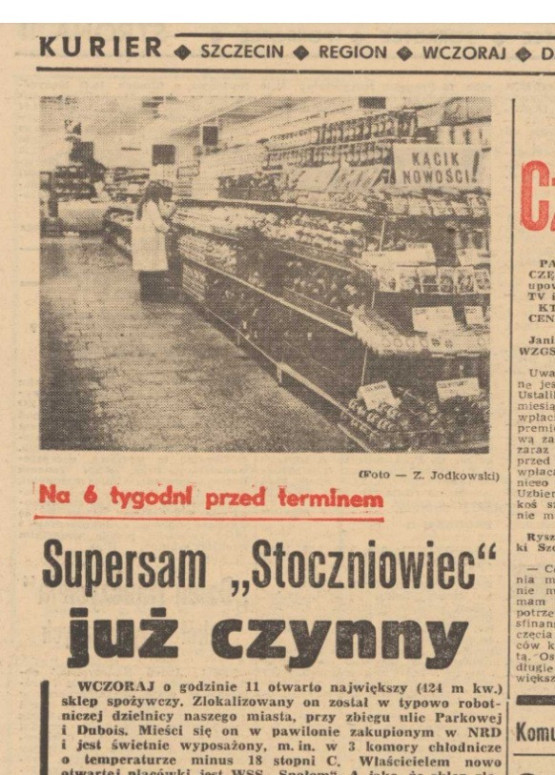 „Ma trzy komory chłodnicze, ladę mięsną, kącik z nowościami i największe wyposażenie alkoholowe w tej części miasta” – czytamy w relacji z otwarcia „Stoczniowca”.