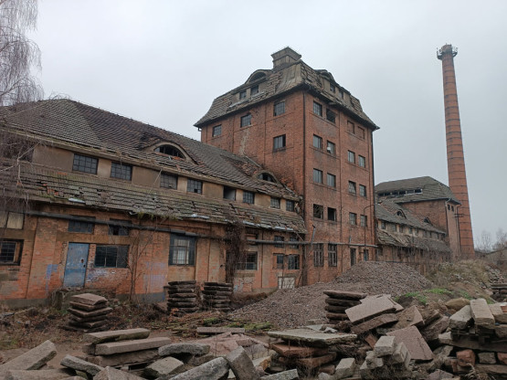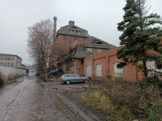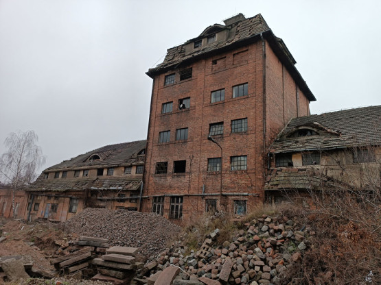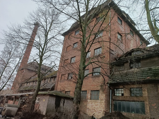 Ta działka to właśnie ten stuletni budynek i sąsiedni komin.. Na razie nie poznaliśmy dalszych planów właściciela po zapowiadanej rozbiórce.