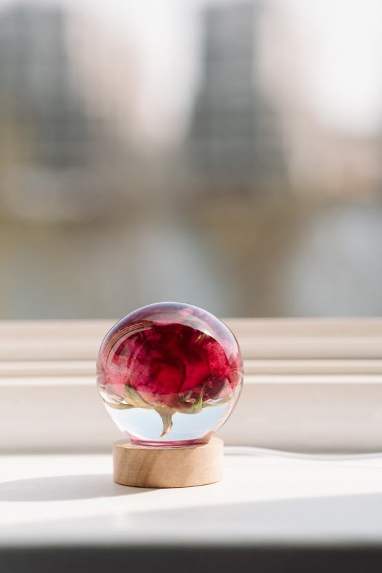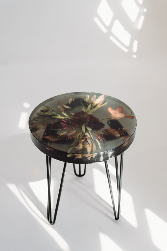 Kwiaty z bukietu można zatopić w blacie stolika, w tarczy zegara, ramce do zdjęć, można zrobić pamiątkową bryłę do postawienia na półce. Czas przygotowania takiej pamiątki to kilka tygodni.