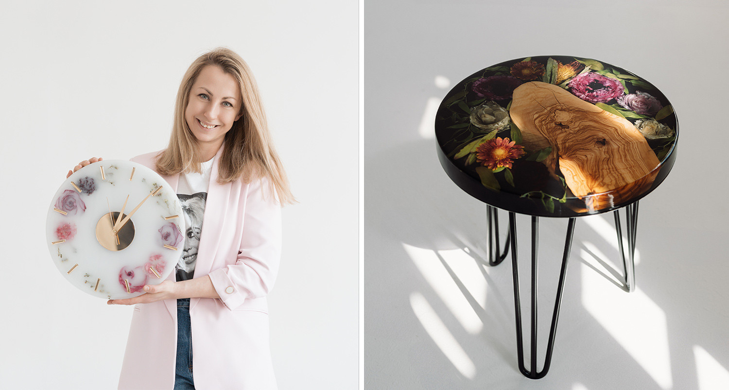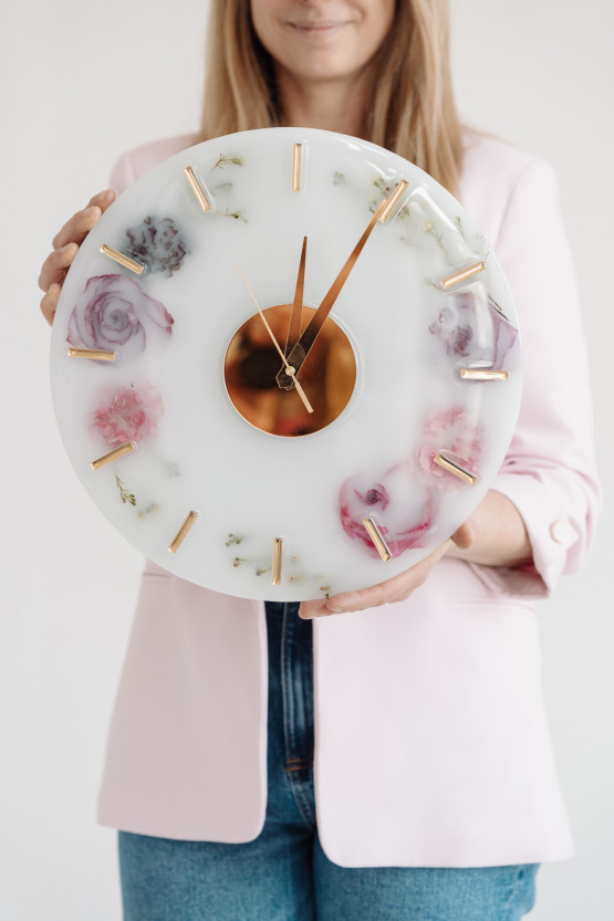 Ślubne bukiety to nie wszystko, bo drugi filar działalności Kraftowego Studia to warsztaty z żywicy epoksydowej. Podczas takich warsztatów można zrobić własne stoliki, zegary czy inne przedmioty codziennego użytku: np. patery, podkładki, a nawet ozdoby na choinkę. - Jestem otwarta na pomysły moich klientów - mówi Małgorzata Masłowska.