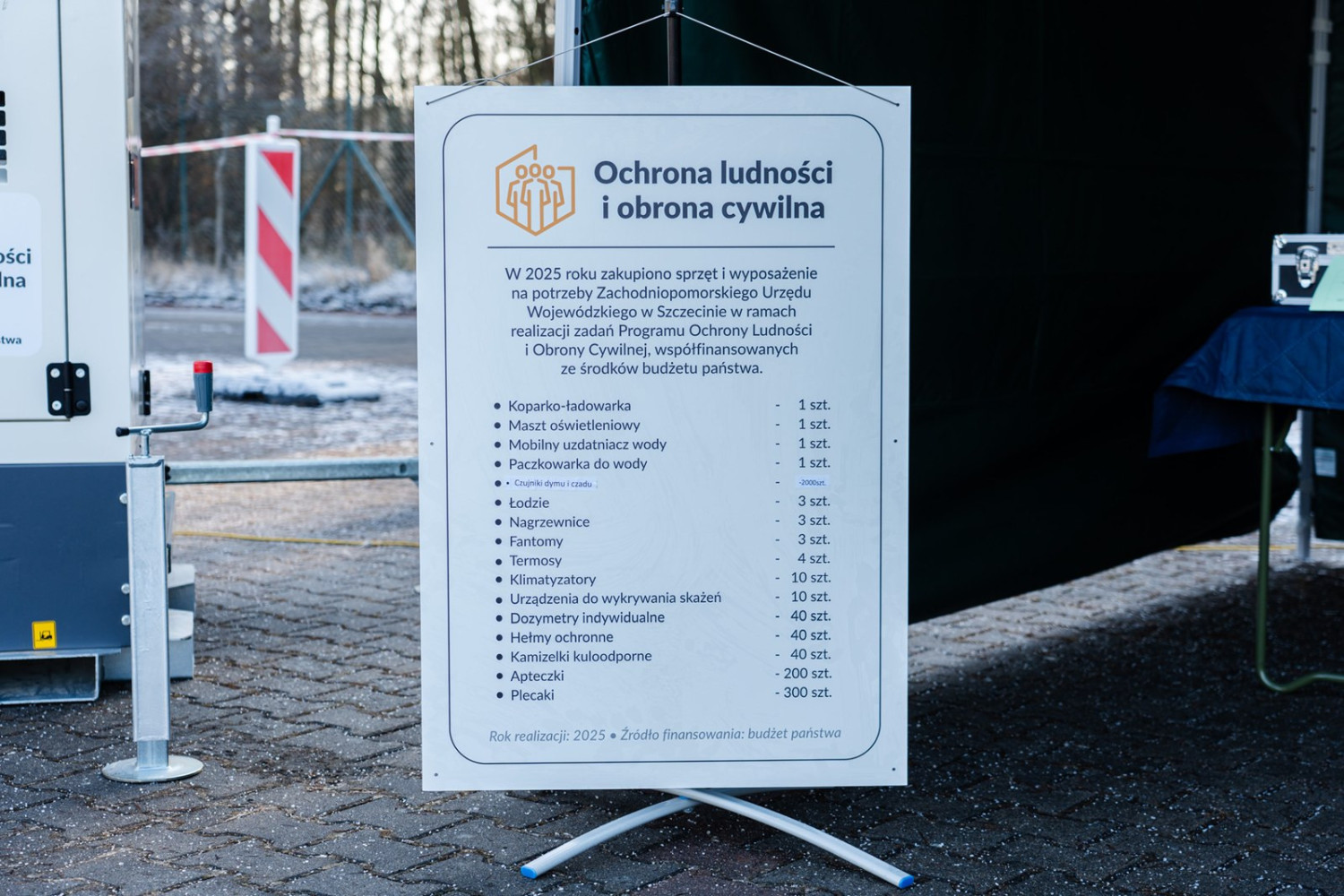 Ważną częścią zakupów były urządzenia do wykrywania skażeń i dozymetry indywidualne. Uzupełniono też zapasy nagrzewnic, fantomów, termosów, klimatyzatorów, hełmów ochronnych, kamizelek kuloodpornych, apteczek i plecaków.