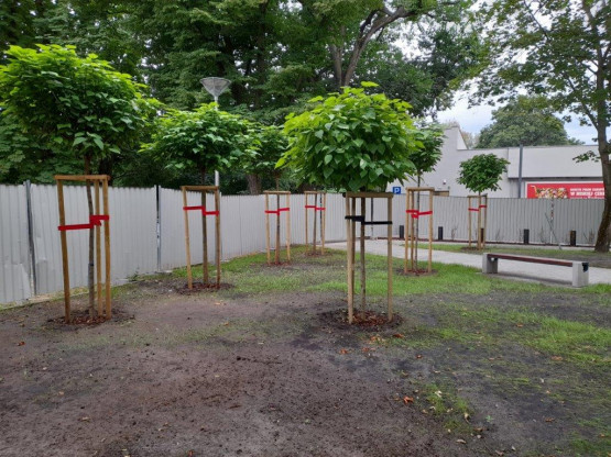 Pojawiła się też nowa zieleń. Założono trawniki, dosadzono 10 drzew z gatunku surmia Catalpa bignoides o obwodzie pnia 16-18 cm, a także 58 sztuk krzewów: tawuły śnieżne, tawuły japońskie oraz berberysy Thunberga.