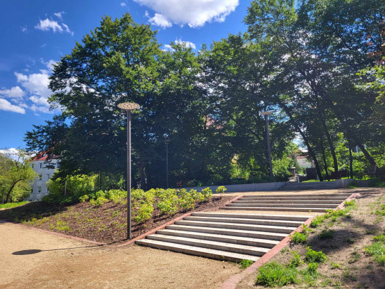 Powstały nowe alejki parkowe oraz schody łukowe w kierunku ul. Słowackiego, wykonane po części z materiału ze starych schodów.