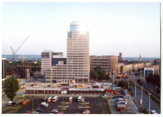 T.P.: Były oczywiście różne konferencje prasowe wcześniej, były publikacje w prasie, był pokazywany projekt, makieta, jak ten obiekt ma wyglądać. Także Szczecin wiedział co się buduje, jak to będzie wyglądać, chociaż oczywiście do końca ta wizja była troszeczkę w obłokach. Trzeba chyba przede wszystkim kierownictwu PŻM -u pogratulować odwagi, że w tak trudnych czasach zdecydowało się na taką inwestycję. I że samo jedno zostało na polu bitwy, bo z założenia miało to być centrum zarządzania flotą, w momencie, gdy istniało tutaj dużo morskich przedsiębiorstw. Tutaj te wszystkie przedsiębiorstwa miały się gromadzić, a na koniec została właściwie tylko Polska Żegluga Morska.