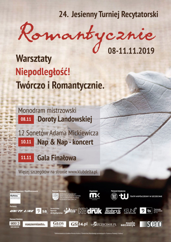 To już 24. edycja tego tak ważnego dla środowiska recytatorów turnieju. Uczestnicy wydarzenia będą żonglowali słowami podczas warsztatów i przesłuchań oraz koncertu konkursowego, który zaplanowano na 10 listopada. Laureatów „Romantycznie” 2019 poznamy zaś podczas poniedziałkowej gali finałowej o godz. 14.00.