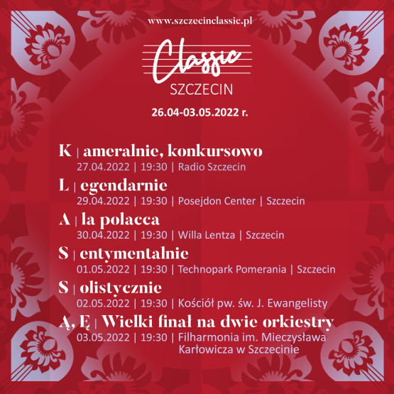 Na „Wielki finał na dwie orkiestry” Szczecin Classic zaprasza 3 maja o godz. 19.30 do Filharmonii im. M. Karłowicza w Szczecinie. Bilety na koncert dostępne są na stronie:
