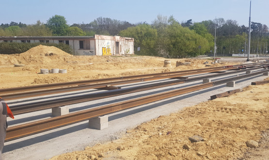 Szyny są właśnie ustawiane i spawane. To największa nowość na placu budowy, ale dzieje się tam dużo więcej.