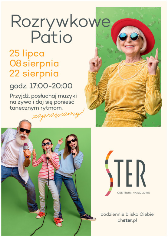 Na Rozrywkowym Patio w Centrum Handlowym Ster zabrzmią muzyczne hity grane przez zespół na żywo. To już tradycja, że latem organizowane są tam popularne potańcówki. Najbliższa w piątek, 8 sierpnia, od godziny 17 do 20, a kolejna edycja już 22 sierpnia.