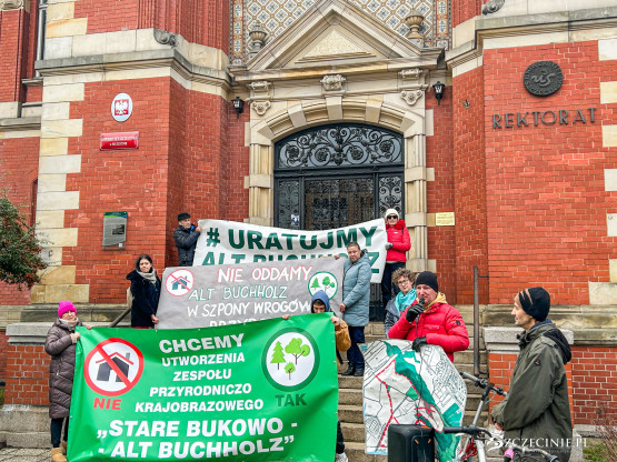 List trafi też do Uniwersytetu Szczecińskiego. Manifestujący oczekują definitywnej rezygnacji z przetargu na sprzedaż działki. A od Krajowego Ośrodka Wsparcia Rolnictwa (też ma nieruchomości w tej okolicy) poparcia projektu ustanowienia zespołu przyrodniczo-krajobrazowego.