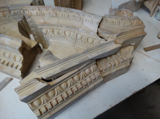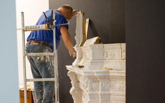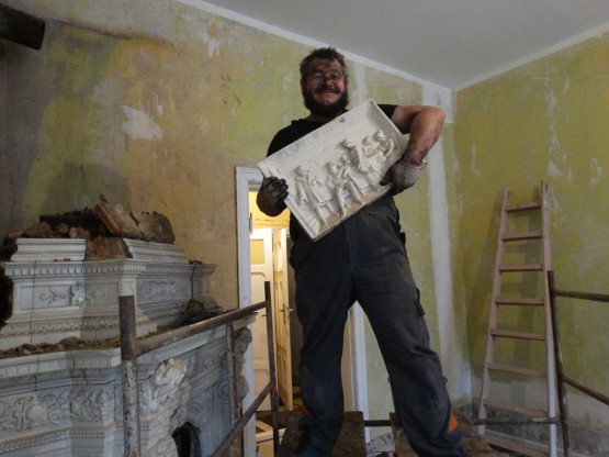 - Największym problemem była kruchość kafli. Trzymały się tylko na farbie. Dużo elementów było popękanych – mówi Maciej Burdzy. – Konieczne było również cięcie niektórych kafli ze względu na zmianę kształtu pieca. Przedtem był wolnostojący, a teraz został ustawiony przy ścianie.