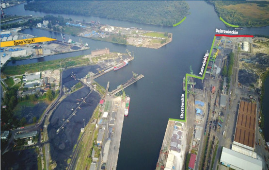 – Od momentu wkroczenia na teren budowy, pod koniec ub. roku prace rozpoczęły się jednocześnie na kilku frontach robót przewidzianych do realizacji w pierwszym etapie. Te obejmują przebudowę Nabrzeża Chorzowskiego i Gliwickiego Uskok, prace związane z zalądowieniem Basenu Noteckiego i budową nowego Nabrzeża Zamykającego, budowę nowego Nabrzeża Dąbrowieckiego wraz z przystanią dalbową, obudowę narożników Wysp Ostrów Mieleński i Mieleńska Łąka oraz częściowe prace czerpalne przy nabrzeżach Basenu Kaszubskiego do głębokości 12,5 m. W tym etapie zmodernizowanych zostanie ok. 400 metrów nabrzeży i tyle samo powstanie nowych – informuje Monika Woźniak-Lewandowska z ZMPSiŚ.