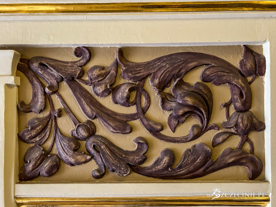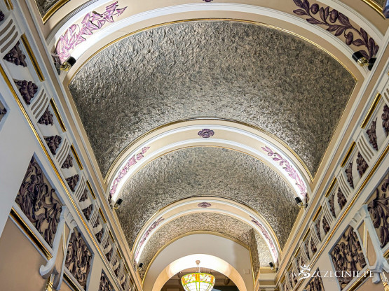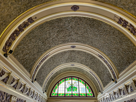 Kiedy wchodzimy do środka, trudno skupić wzrok na jednym punkcie. Wszystko przez bogactwo sztukaterii, roślinne ornamenty, bogato zdobiony sufit i jeden z wielu, jak się potem okaże, witraży. To dopiero początek, ale z jakim przytupem.