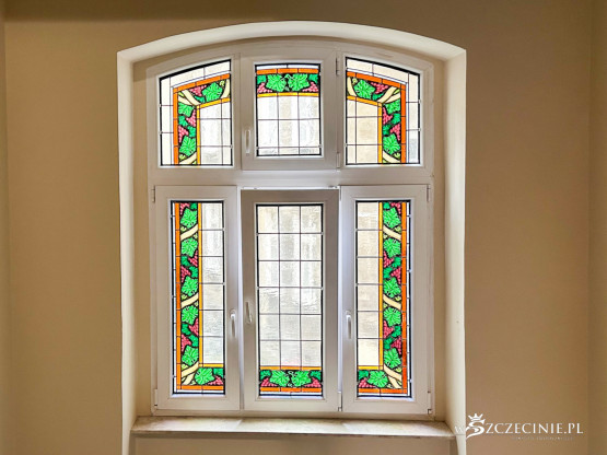 – Wszystkie elementy na kamienicy zostały powielone we wnętrzu. Mowa o elementach flory i fauny, jest gryf szczeciński, elementy nawiązujące do antyku, pod sklepieniem widoczna jest winorośl. Te elementy zostały przełożone również na witraże, które wykonane są z katedralnego szkła – opowiada plastyk Piotr Dziemianowski, właściciel pracowni.