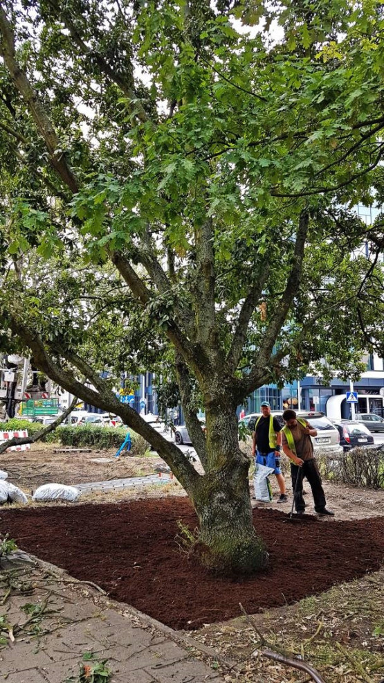 Jak informuje miasto, w ramach prac z obrysu koron drzew usunięta została darń, ukształtowano nowe misy ziemne. Na głębokości 6-8 centymetrów stare podłoże zostało wymienione na „podłoże organiczne bogate w zasoby mineralne oraz wolne od patogenów”.