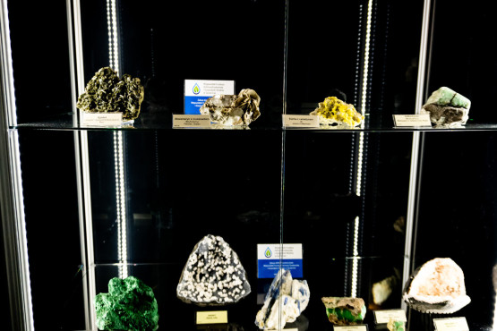Uwagę zwiedzających w sposób szczególny przykuwa podświetlana ultrafioletem gablota z minerałami fluorescencyjnymi. Wystarczy zgasić w pokoju zwykłe światło, by uranocircite (ruda uranu) nagle zajaśniał na zielono. A leżący obok rubin, zyskał jeszcze bardziej nasycony czerwony kolor. Zupełnie inaczej prezentują się też sjenit czy kalcyt.
