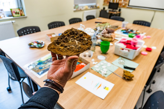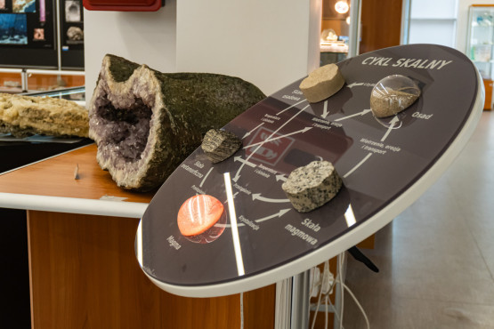 – Dbamy o to, żeby zwiedzanie nie było tylko przechodzeniem od gablotki do gablotki. Zwłaszcza, że często gościmy tutaj grupy dzieci w wieku wczesnoszkolnym, dla których byłoby to nużące. Dlatego opracowałem autorskie programy warsztatów. Wystarczy zbudować odpowiednią opowieść i dzieci wręcz nie chcą stąd wychodzić – mówi dr Robert Woziński, kierownik Muzeum Geologicznego US.