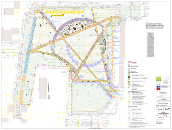 Częścią nowego zagospodarowania terenu będzie mała architektura, czyli ławki, kosze na śmieci, stojaki rowerowe, a nawet domki dla owadów i motyli. Dopełnieniem całości będzie zieleń: nowe drzewa (część będzie nasadzeniami zastępczymi, związanymi z wycinką drzew w innych częściach miasta), krzewy, pnącza, byliny, trawy ozdobne i trawniki.
