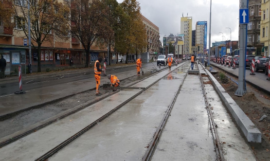 – prace związane z montażem szyn i ustawianiem torowiska na pl. Rodła i ul. Piłsudskiego;