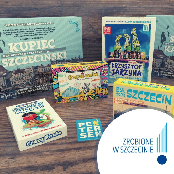 W atmosferę przedwojennego Szczecina można zanurzyć się, grając w planszówkę „Kupiec Szczeciński”. To gra stworzona przez Piotra Owczarka i Romana Czejarka – znanego dziennikarza, od lat zgłębiającego i opisującego historię naszego miasta. Kupiec Szczeciński pozwala poznać najważniejsze i najpiękniejsze miejsca Szczecina, czasem już dziś nieistniejące. Taka promocja miasta musiała zostać uhonorowana znakiem „Zrobione w Szczecinie”.