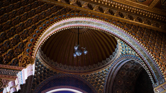 – Sala mauretańska nawiązuje stylem do bardzo znanej budowli, pałacu Alhambra pod Granadą. Choć takim bezpośrednim wzorem była prawdopodobnie łazienka w pałacu w Schwerinie – mówi Maciej Słomiński. – Pod oknem znajdowała się wanna lub brodzik. Pozostała część pokoju, nakryta stropem, była garderobą. W 1911 r. willę kupił Wilhelm Doring, który przerobił łazienkę na pokój mieszkalny. Znikła wanna, na podłodze pojawił się parkiet. Na ścianach pokrytych kaflami pojawiła się malatura o wzorze orientalnym. Pozostałe elementy pozostały oryginalne. Wspaniała dekoracja stiukowa, drewniane kolumny, kopułka nad częścią, gdzie mieściła się łazienka i kasetony w części służącej jako garderoba. Mimo „orientalnego” charakteru wystroju, tak naprawdę tworzą ją elementy zaczerpnięte z architektury europejskiej.