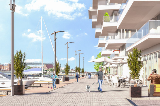 Poza budową mieszkań zaplanowano także rewitalizację nabrzeża. Powstanie tam ogólnodostępny deptak i przystań. Na parterach budynków zarezerwowano miejsce dla kafejek i lokali usługowych.