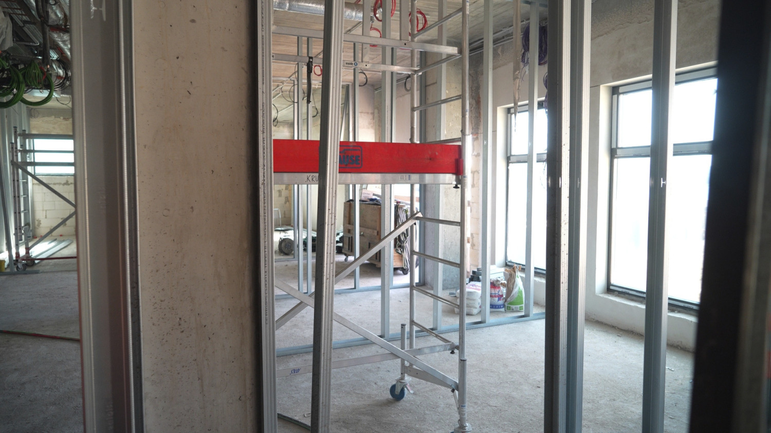 – Na parterze, gdzie znajdzie się część dla interesantów, wykonywane są tynki gipsowe, sucha zabudowa. Wszystkie instalacje, które będą ukryte, są już wykonane – informuje kierownik budowy Mateusz Nowak.