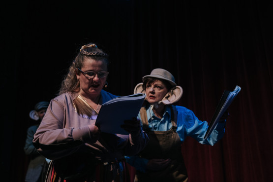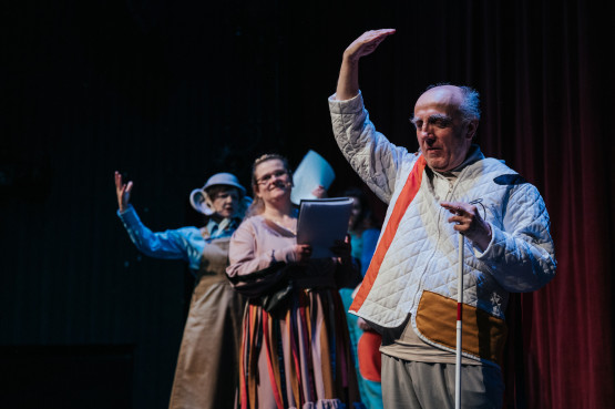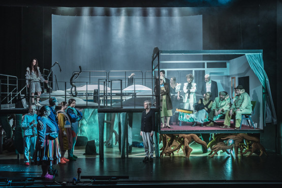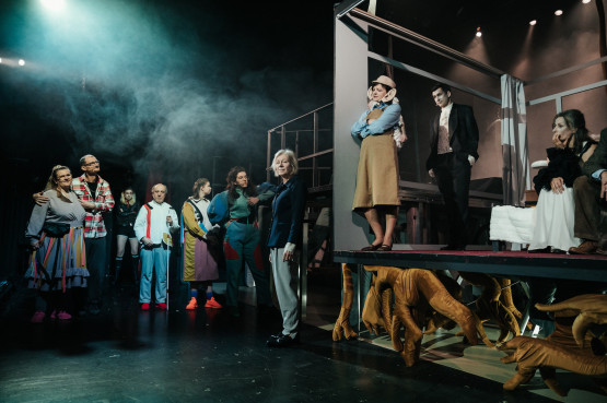 Na scenie widzimy etatowych aktorów Teatru Współczesnego (to m.in.: Wojciech Sandach, Konrad Pawicki, Grażyna Madej, Paweł Niczewski, Marian Dworakowski, Barbara Lewandowska, Wiesław Orłowski), których dramatyczne role są ważne, ale sądzę, że publiczność szczególnie uważnie obserwuje poczynania „neofitów”, tzn. aktorów z niepełnosprawnościami (to Amelia Blus, Jolanta Niemira, Justyna Utracka, Bogusław Krasnodębski). Kreują postać Puka (czy też Puków) i wprowadzają inscenizację w performatywny wymiar.