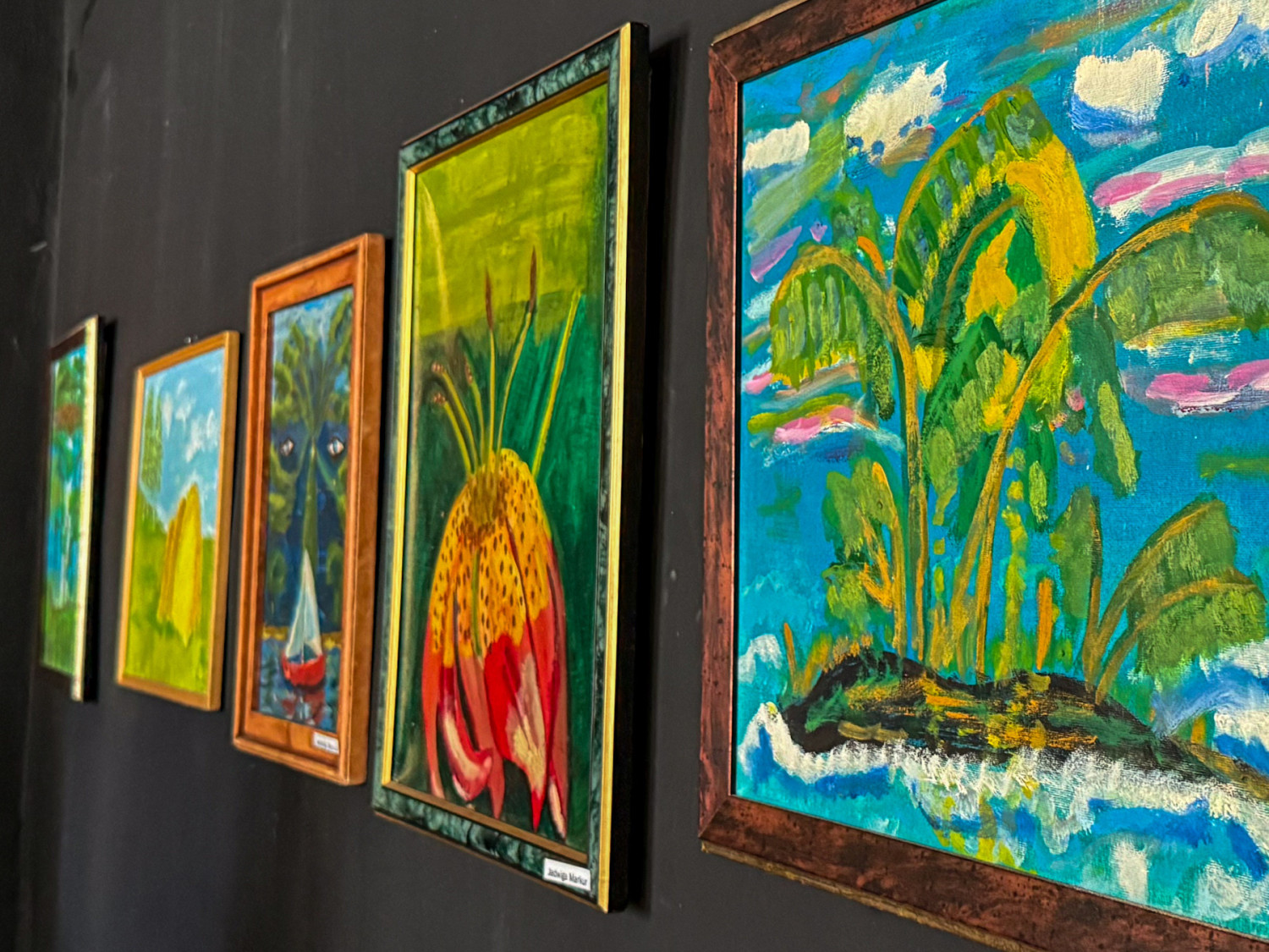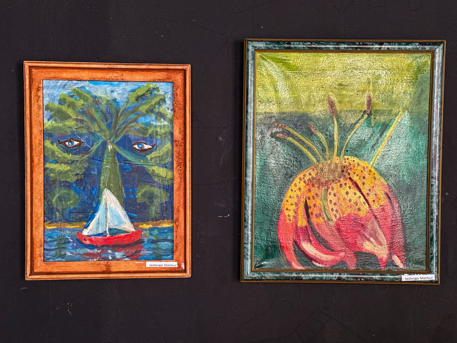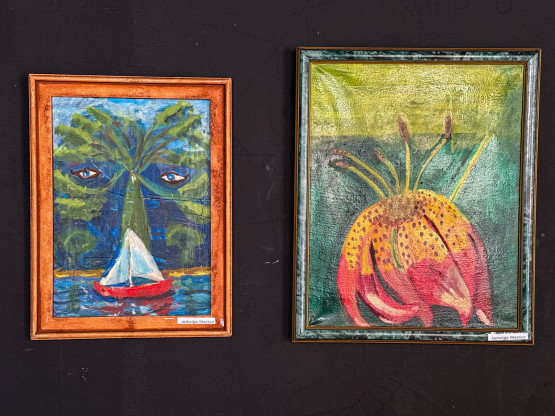 – Pierwsze prace malowałam w jeden dzień. Ale to nie były obrazy, a raczej pacykowanie płótna. Teraz to i po roku wracam do niektórych obrazów. Nawet, gdy są już w ramach. Zawsze znajdzie się jakiś błąd. Bardzo lubię malować bajki, kwiaty, które nie istnieją i przenośnie. Jak ta łódka – wskazuje na jeden z obrazów. – To opatrzność. Oczy patrzą, a życie płynie jak ta łódka – opowiada.