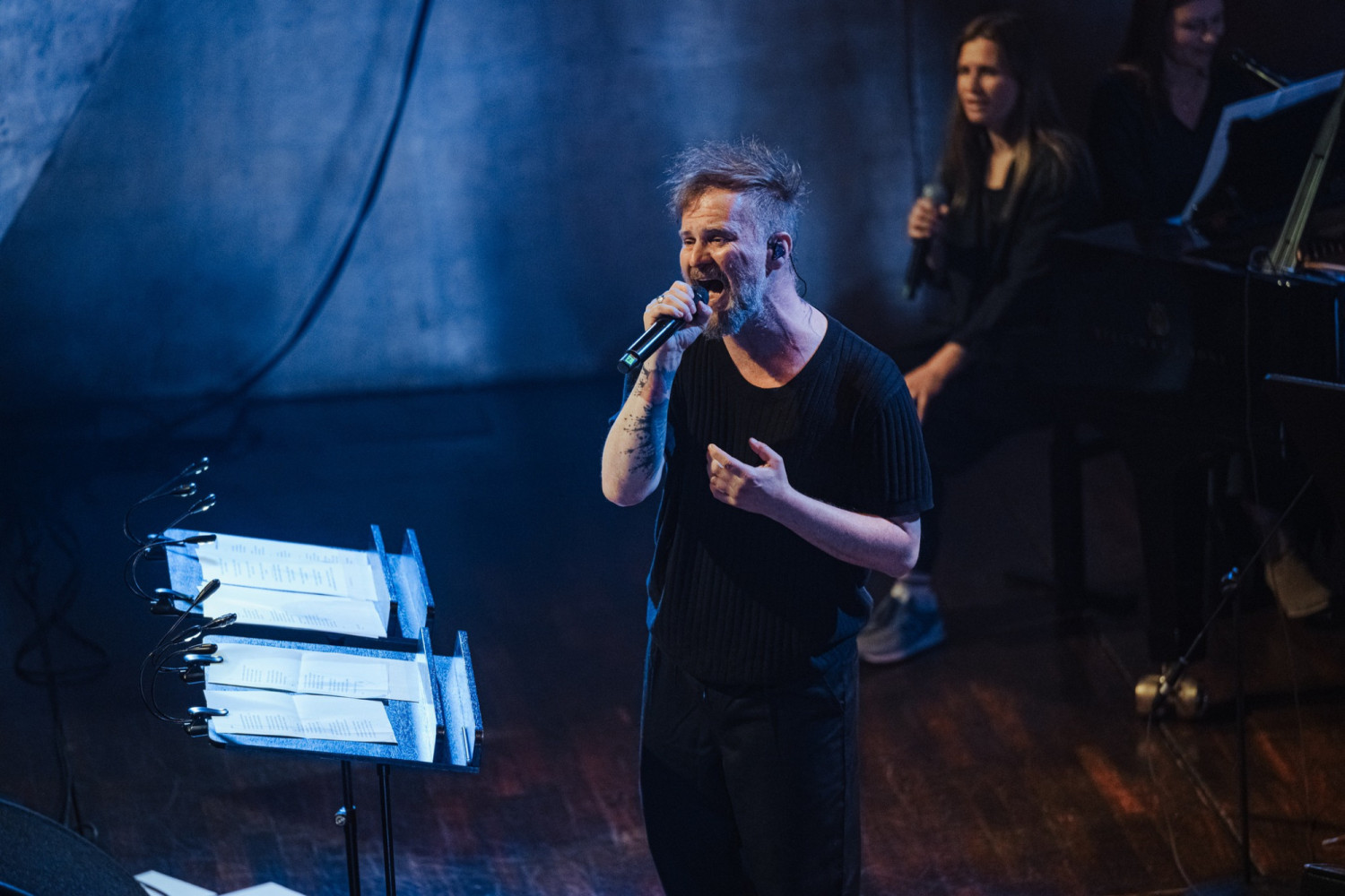Na scenie w Złotej Sali pojawiło się zatem czworo wokalistów, czyli Natalia Grosiak – znana z zespołu Mikromusic, Tomasz Organek, Aga Kiepuszewska i Maciej Starnawski, oraz muzycy, którzy dysponowali bardzo „rozległym” instrumentarium – od wibrafonu, przez gitary elektryczne, flet altowy, trąbkę, saksofony, puzon basowy czy klarnet basowy. Wieczór rozpoczął się od utworu „Dudarz” zaśpiewanego przez Starnawskiego, któremu pozostali wokaliści towarzyszyli jako chórek.