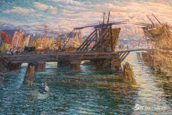 Na wystawie możemy oglądać głównie obrazy, które przedstawiają portowy klimat miasta. Widzimy port, targową odsłonę nabrzeży, dawne Tarasy Hakena, kamieniczną zabudowę nadodrzańską, białą flotę zawijającą do portu.