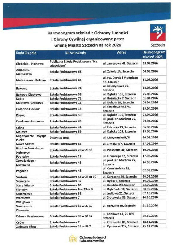 Cykl szkoleń z ochrony ludności i obrony cywilnej rozpoczął się w połowie lutego na osiedlu Głębokie, a na początku marca w 3–godzinnych zajęciach udział wzięło około 40 mieszkańców osiedla Arkońskie–Niemierzyn (limit zapisów wynosił 60).